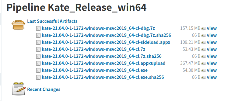 其中形如 kate-21.04.0-1-1272-windows-msvc2019_64-cl-sideload.appx 格式的是供手动安装的商店版本,kate-21.04.0-1-1272-windows-msvc2019_64-cl.exe 格式的则是安装包,下载双击即可。